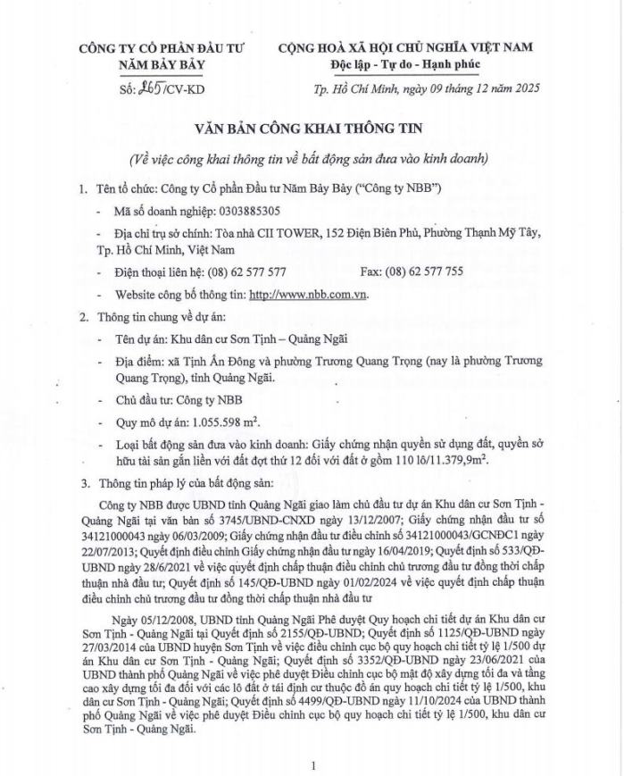 Công khai thông tin về bất động sản đưa vào kinh doanh tại dự án Sơn Tịnh